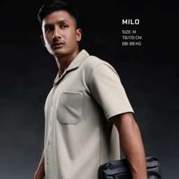 Kemeja lengan pendek regular fit yang nyaman dengan desain spread collar modern untuk kesan maskulin yang clean. Karakter bahannya yang solid membuat tampilan lebih ber-volume dan berstruktur, sehingga siluet tubuh terlihat lebih tegas.